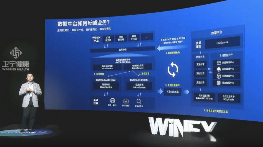 卫宁健康副总裁兼CTO赵大平带来了“WiNEX”产品的全面介绍。他表示,医疗数字化转型在即,全行业面临同质化困局,卫宁健康制定了以数字化重塑顶层设计的三个原则,即重塑业务、重塑标准、重塑架构,以更快的节奏响应业务需求、以更新的技术支撑新场景、以更好的体验服务医护患。
