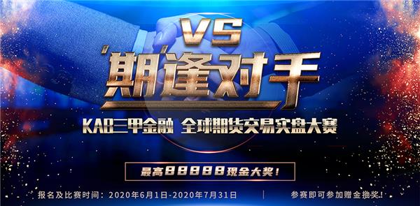 由KAB三甲金融举办的“期”逢对手,暨全球期货实盘交易大赛即将开赛,大赛将定于2020年6月1日正式报名并开赛。KAB三甲金融为此次期货实盘交易大赛准备了丰厚的奖品,最高可获得88888现金大奖,更有傲胜多功能高端智能按摩椅、Apple手机以及平板大礼包、华为手机、京东购物卡等,众多精彩好礼等你来拿。参赛后还可参与赠金抽奖活动,最高赢取200美金!