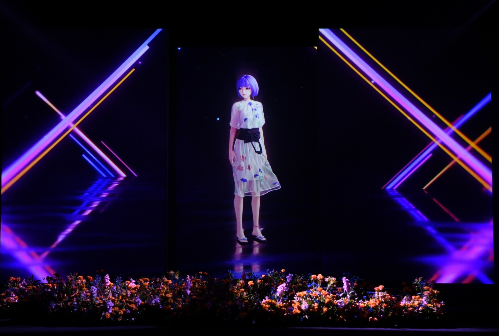 (bilibili虚拟艺人团体VirtuaReal成员阿梓身着由支晨设计的提花连衣裙)