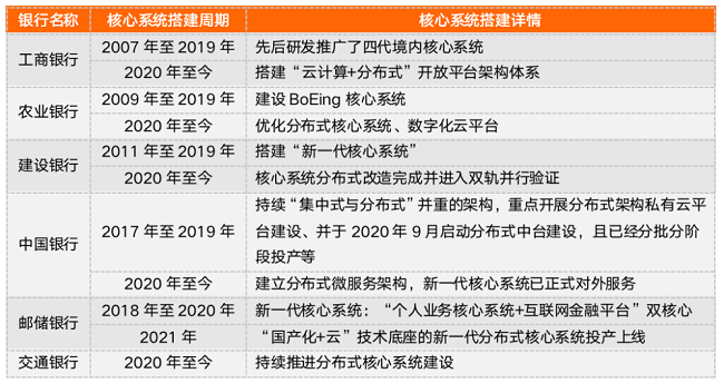 表 1:国有六大行核心系统梳理(不完全统计,截至2021年11月24日)